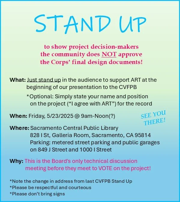 American River Trees (ART) has 20 minutes to present key concerns and less destructive alternatives that must be considered;